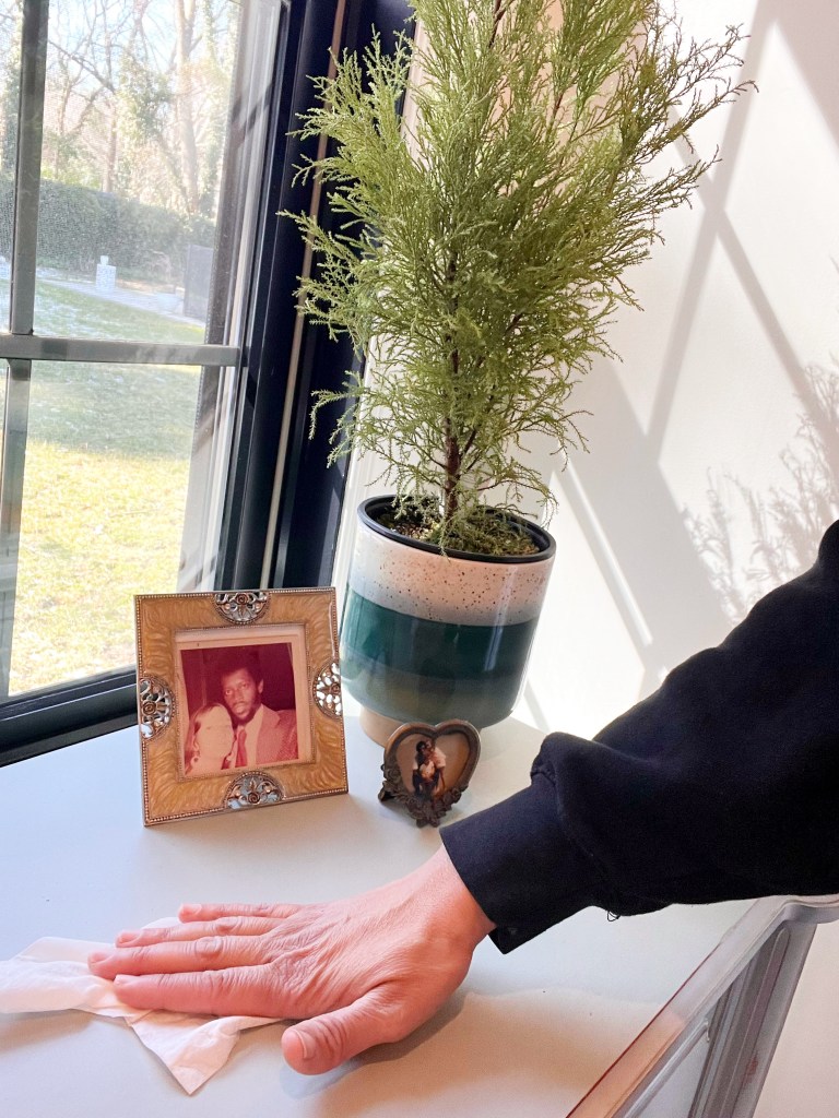 One way to start is by just grabbing a damp paper towel or cloth, and wiping the window sill, the tops of dressers, the nightstand, the coffee table, etc. I’m talking about a 10-second wipe-down a few times a day throughout your house or apartment. I have black windows, and I can see so much dust in them. I swear I wipe them daily, and you would still never know I clean them at all.